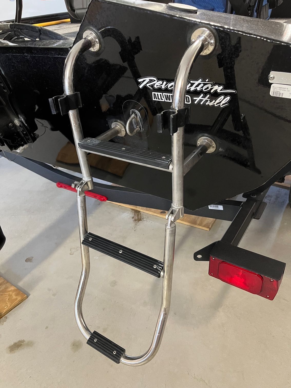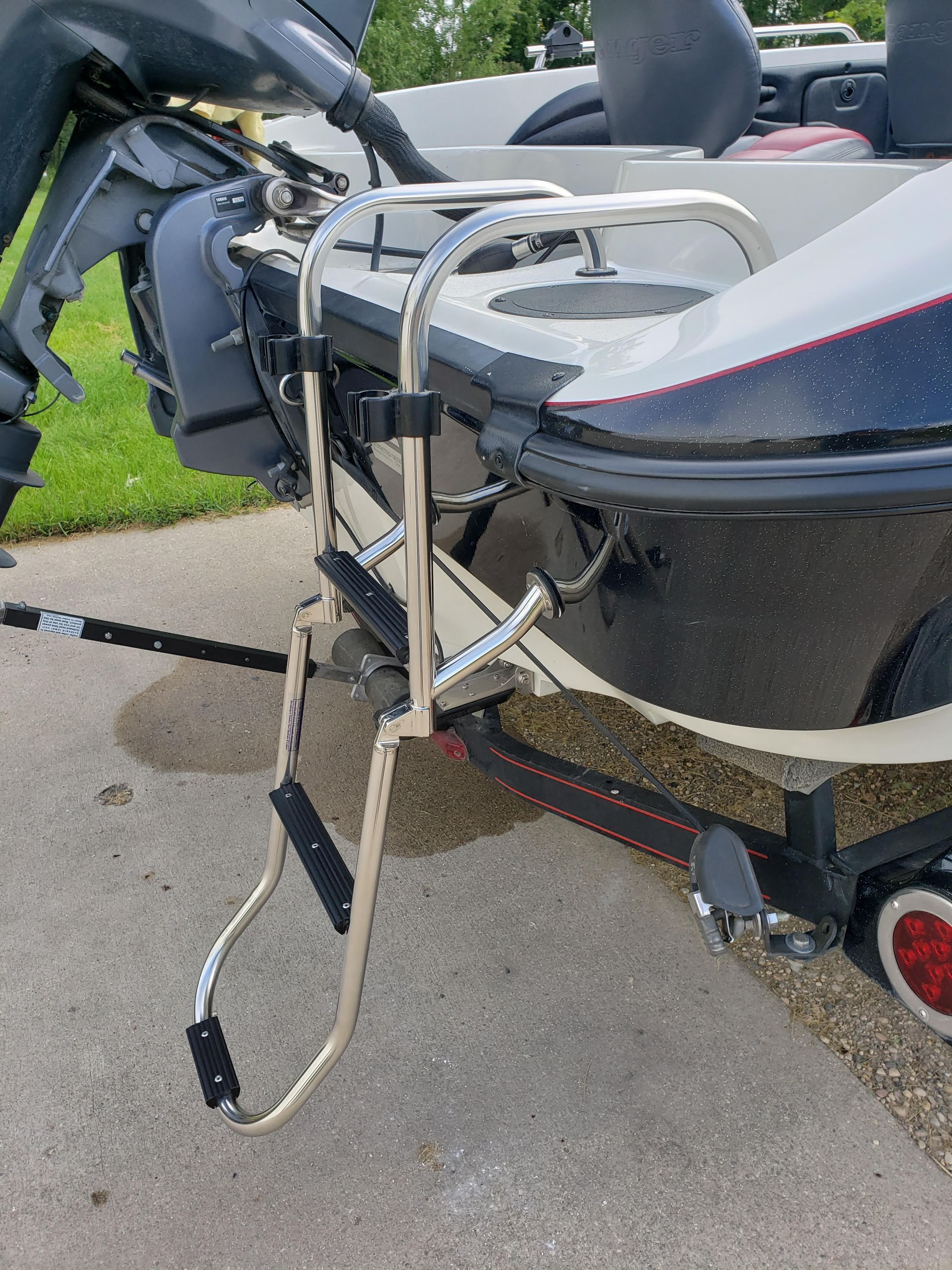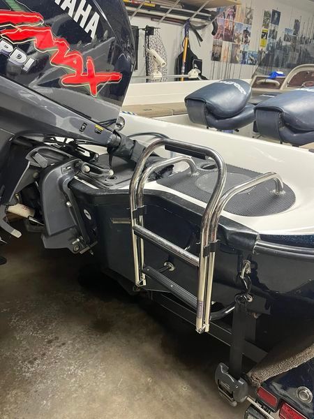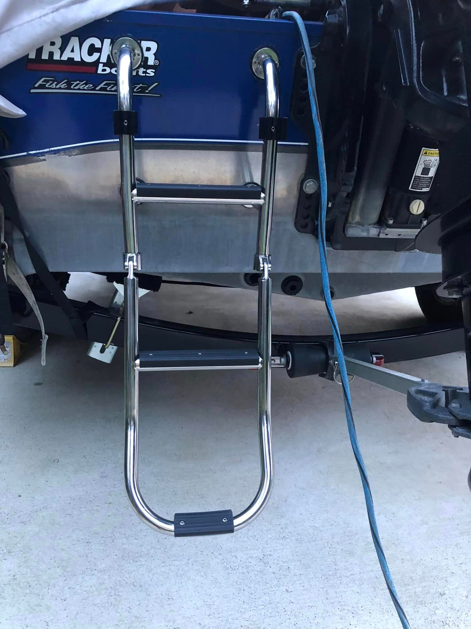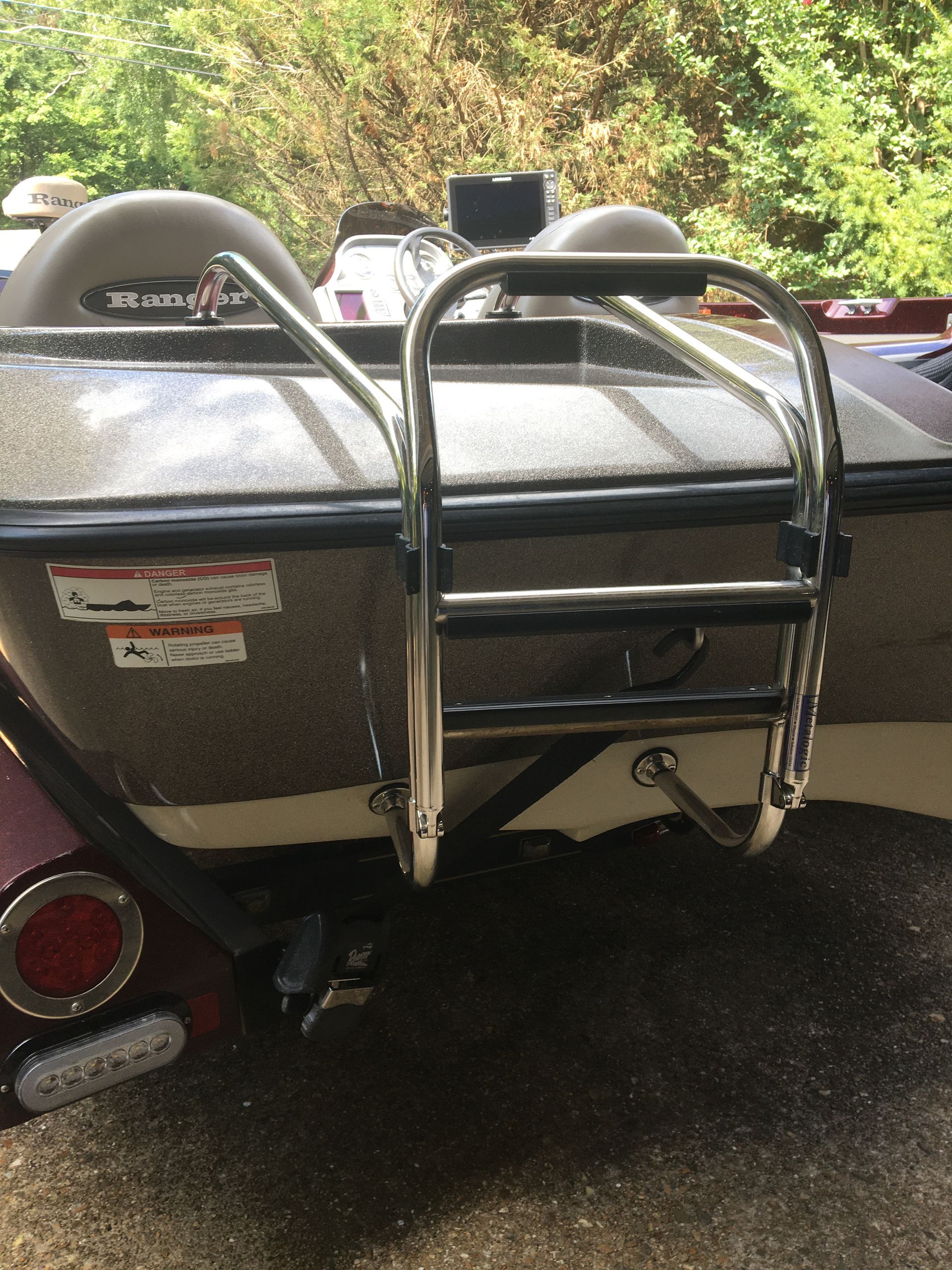 I recently saw a email asking for pictures of customer's ladders. We ordered this Metalogic step ladder for the back of our 2018 Bass Tracker 195 TXW. The mount was easy just needed a couple more hands to help me but overall was an easy job. We’re super happy with it and make’s easy boarding after swimming.