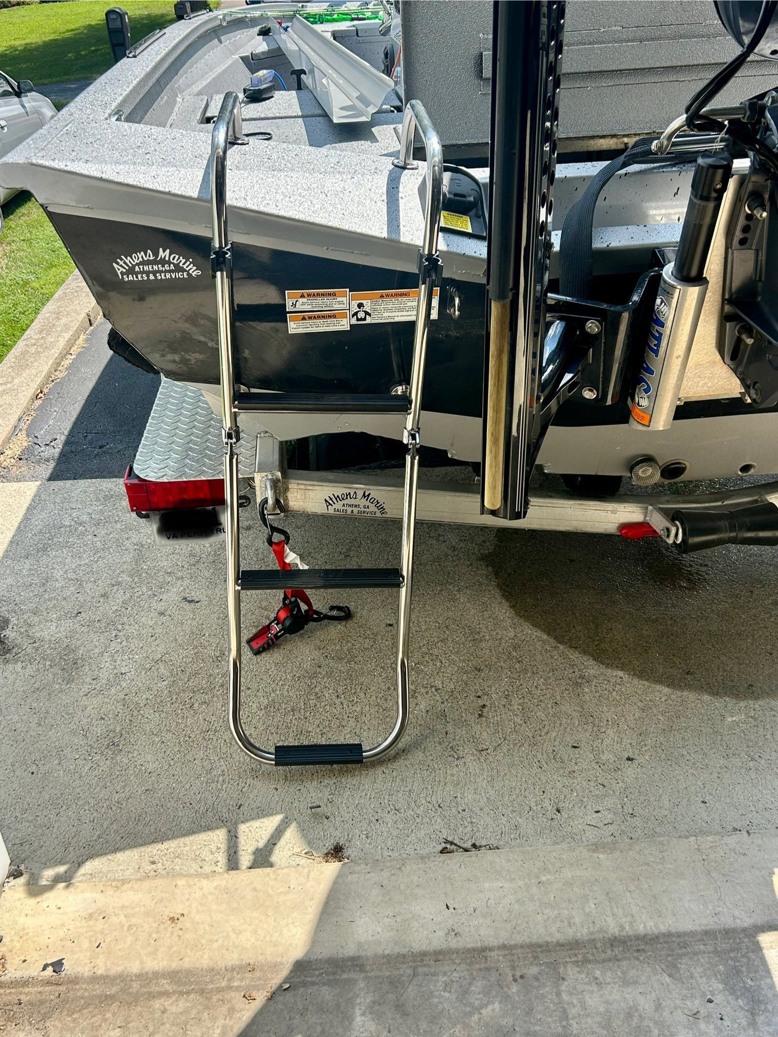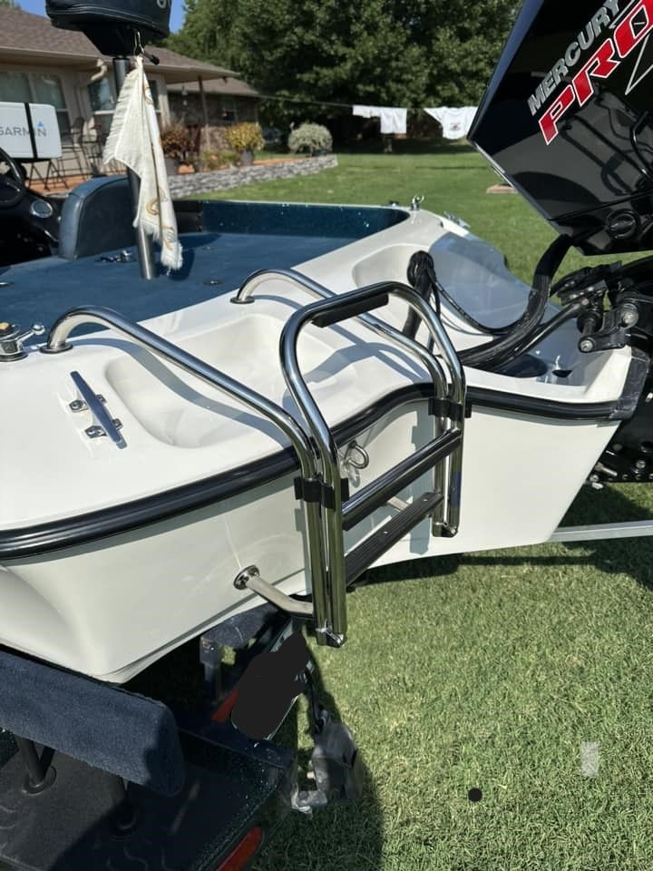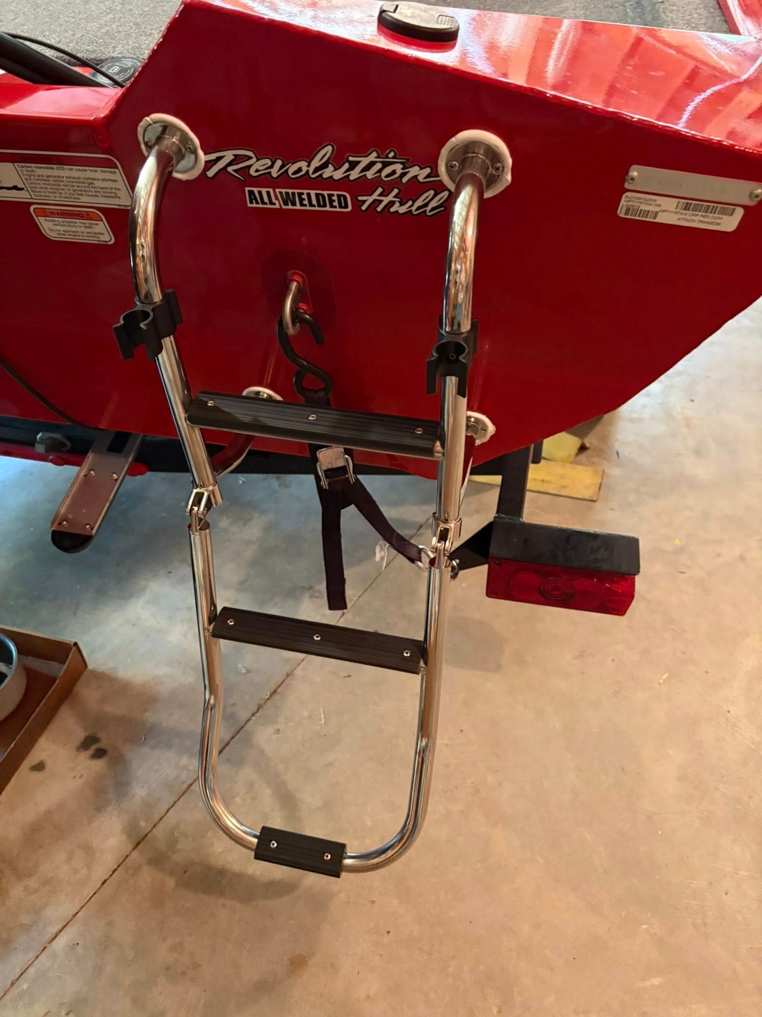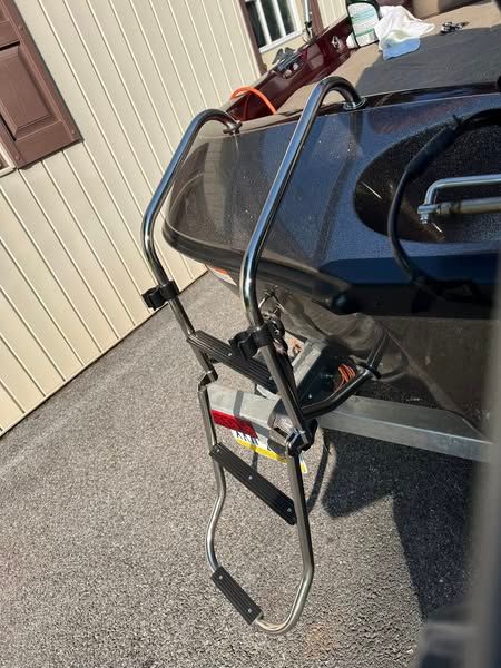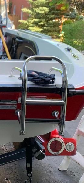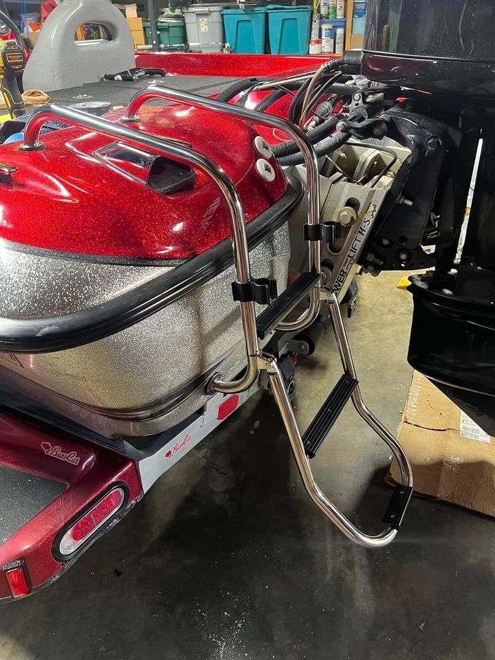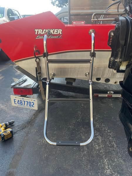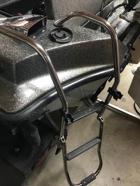 I recently saw a email asking for pictures of customer's ladders. We ordered this Metalogic step ladder for the back of our 2018 Bass Tracker 195 TXW. The mount was easy just needed a couple more hands to help me but overall was an easy job. We’re super happy with it and make’s easy boarding after swimming.