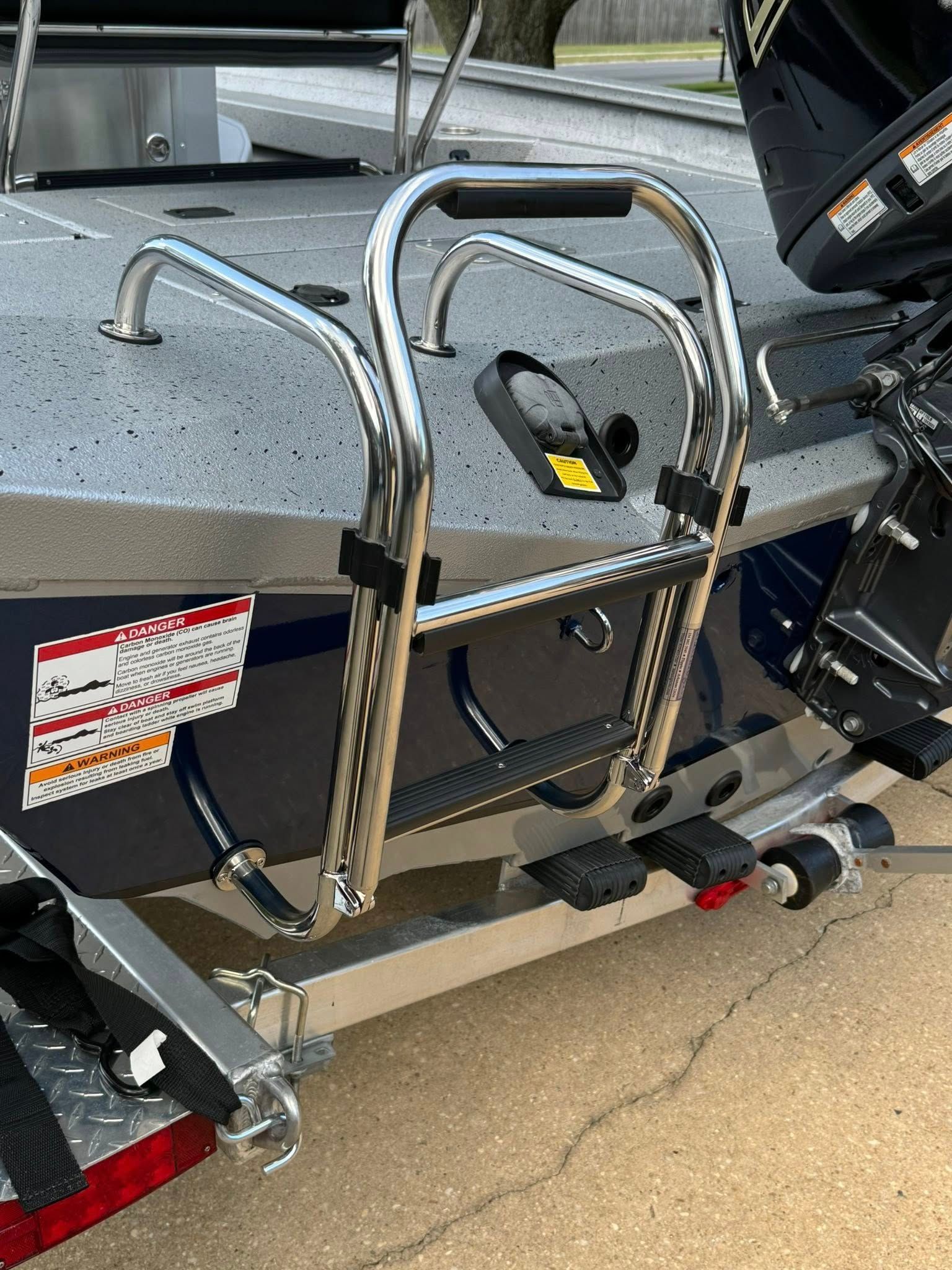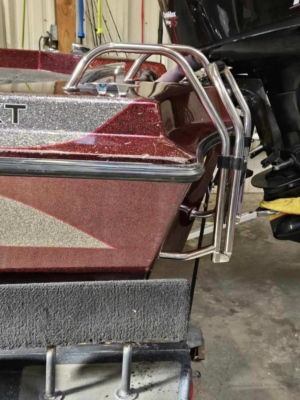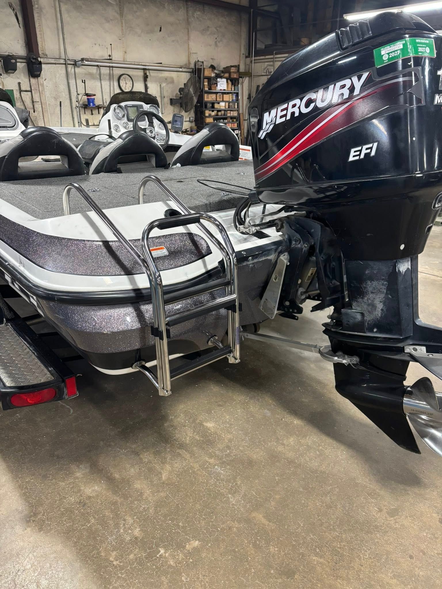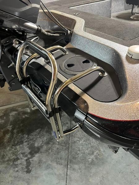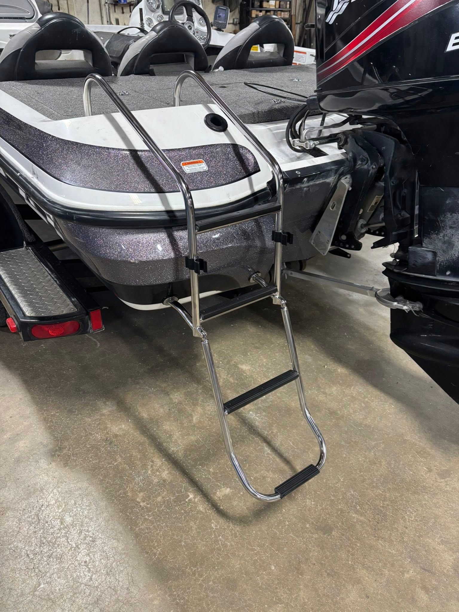 I recently saw a email asking for pictures of customer's ladders. We ordered this Metalogic step ladder for the back of our 2018 Bass Tracker 195 TXW. The mount was easy just needed a couple more hands to help me but overall was an easy job. We’re super happy with it and make’s easy boarding after swimming.