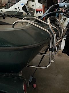 We had to make some changes on Mark’s ladder. There was a tie down cleat and the handrail right in the way of the mount. So we made the port side longer and changed the 45° bend to a 90°. Also, made the trim higher as to not interfere with the cleat. I think Marks pretty happy with it.