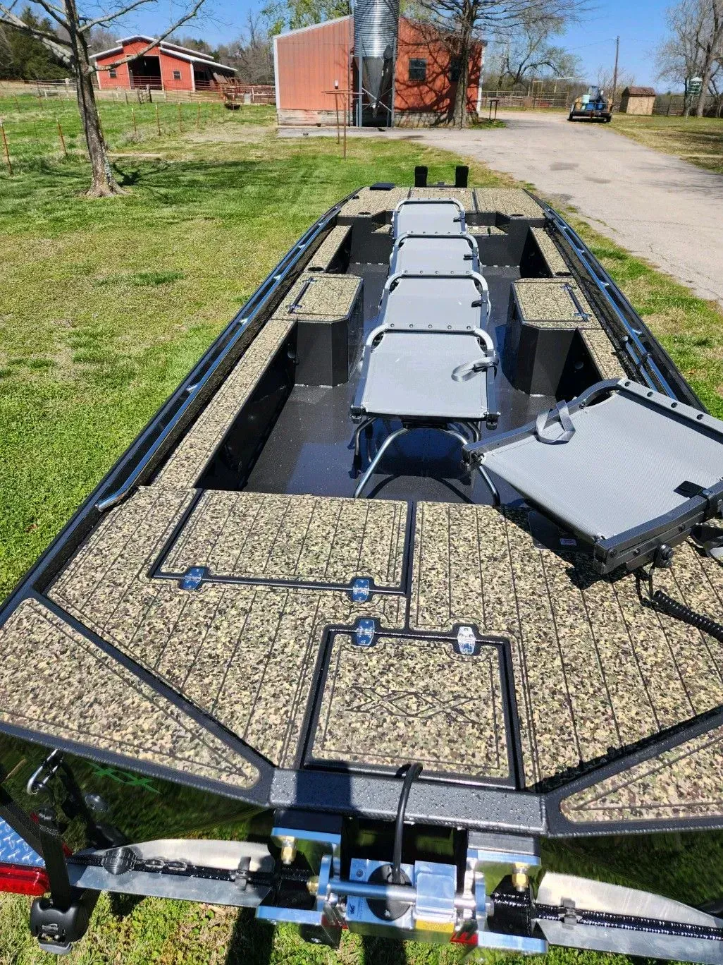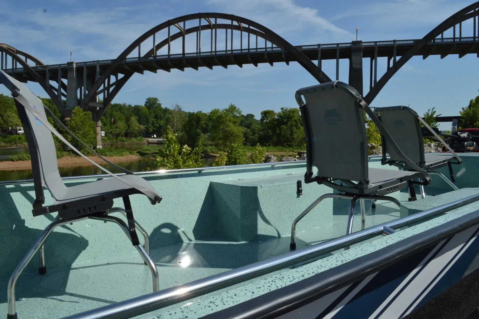 The sturdy stainless steel spider stands are made right here in our shop in Flippin, AR. You can purchase them from us directly. They work great outside of your boat for a good comfortable seat at the campsite.